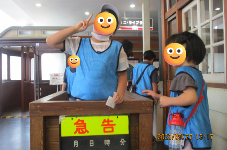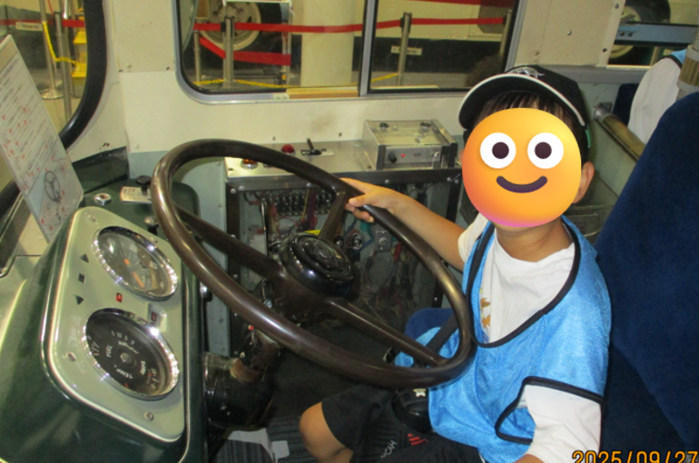 普段乗る事のできない運転席に乗ったり、電車の中で写真とったり、